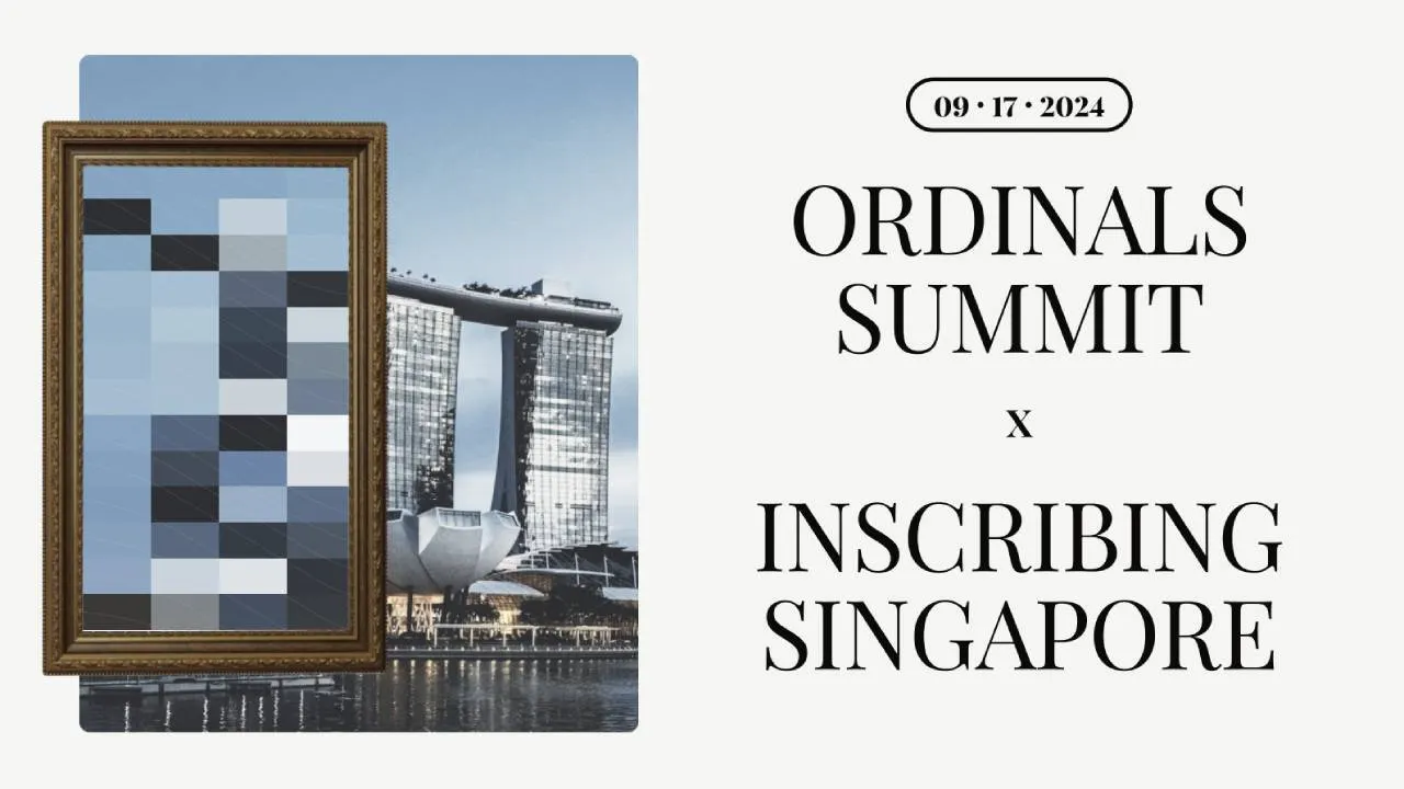 - Inscribing Singapore x Ordinals Summit will be held on September 17, 2024, at the National Gallery Singapore, commencing at 9:30 AM SGT.