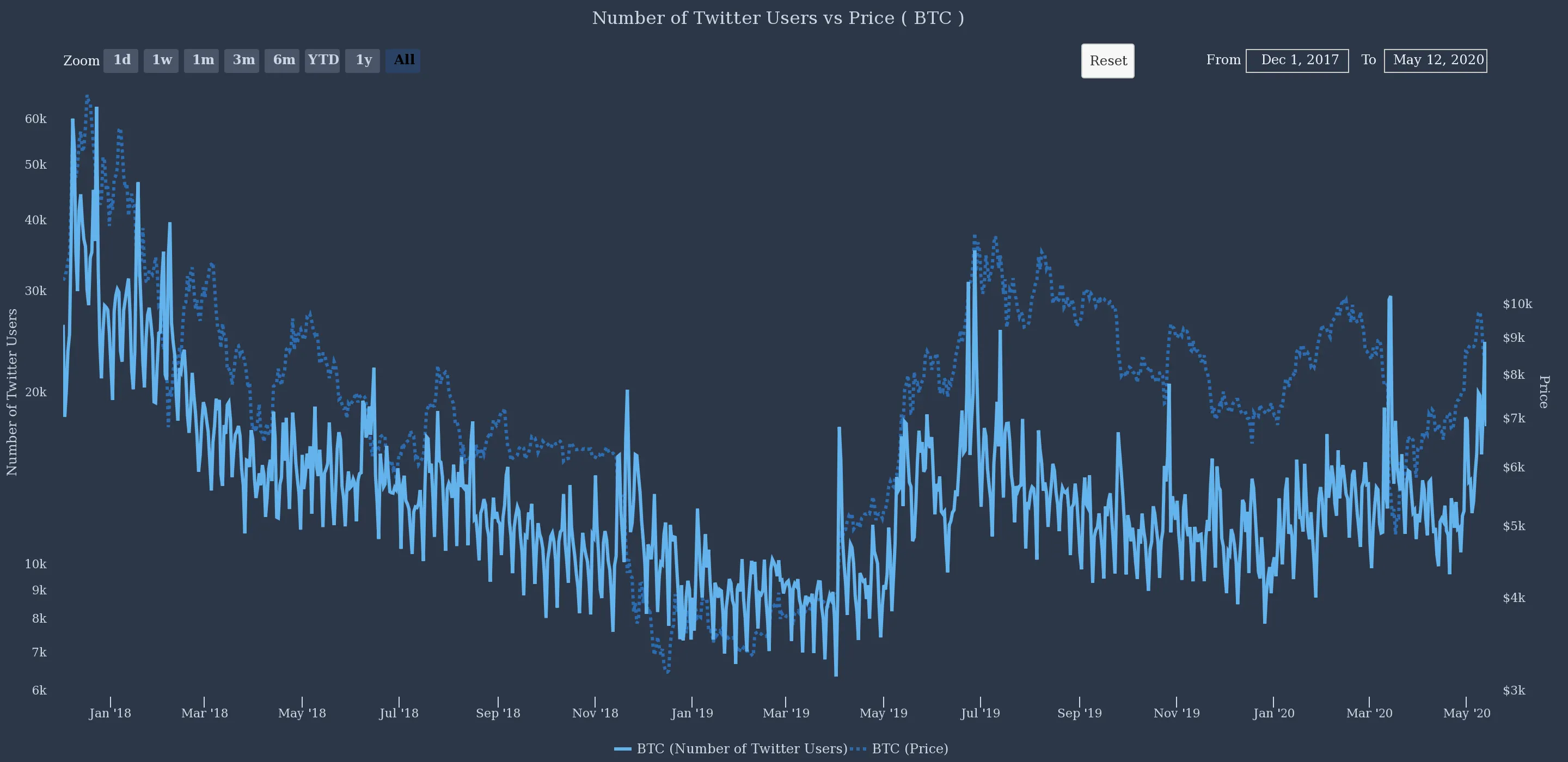 Come the day of the halving, Bitcoin experienced one of the highest numbers of unique Twitter accounts discussing the coin since June 2019—second only to its cataclysmic crash on March 12.