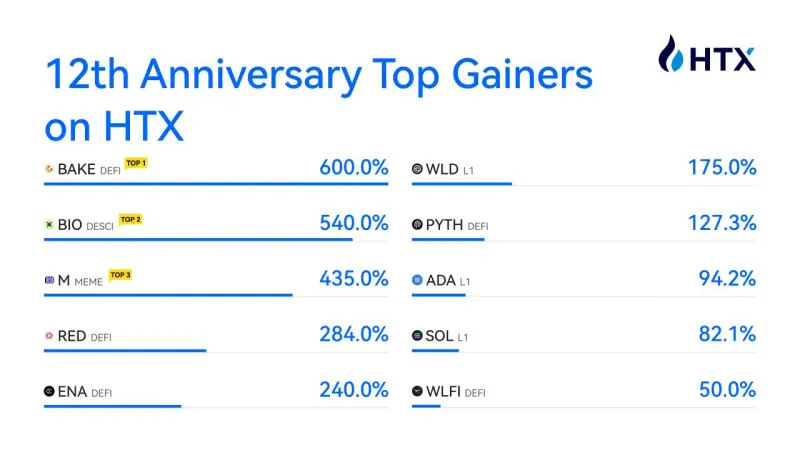- WLFI (World Liberty Financial): Making its global debut on HTX in September 2025, it has recorded an increase of 50% with strategic support from HTX. World Liberty Financial is a DeFi lending project supported by the Trump family, comprising its governance token WLFI and stablecoin USD1. Its mission is to "make crypto and America great by driving the mass adoption of stablecoins and decentralized finance.”