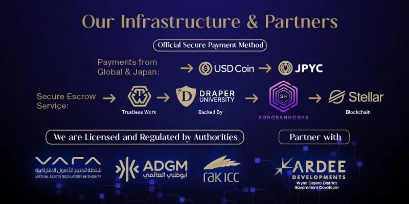 - Secure Payment Methods: Investors can participate globally using USDC and plan to add JPYC for DeFi escrow in 2028