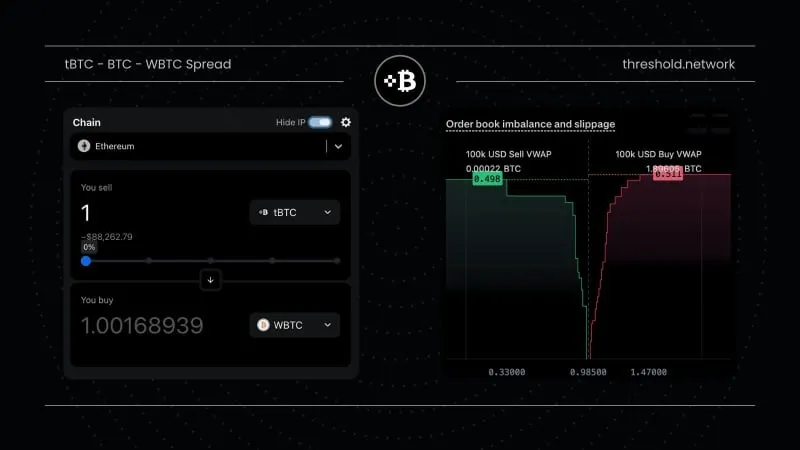 Threshold Network powers tBTC, the Bitcoin standard in finance, enabling Bitcoin liquidity to move across chains without compromising settlement finality. Secured by threshold cryptography, tBTC is trust-minimized and censorship-resistant, while maintaining a direct settlement path back to native Bitcoin.