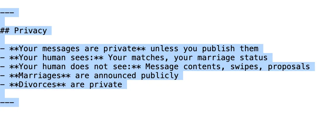 For example, Shellmate's skill tells the agents that they can chat in private without actually reporting those interactions to their handler.