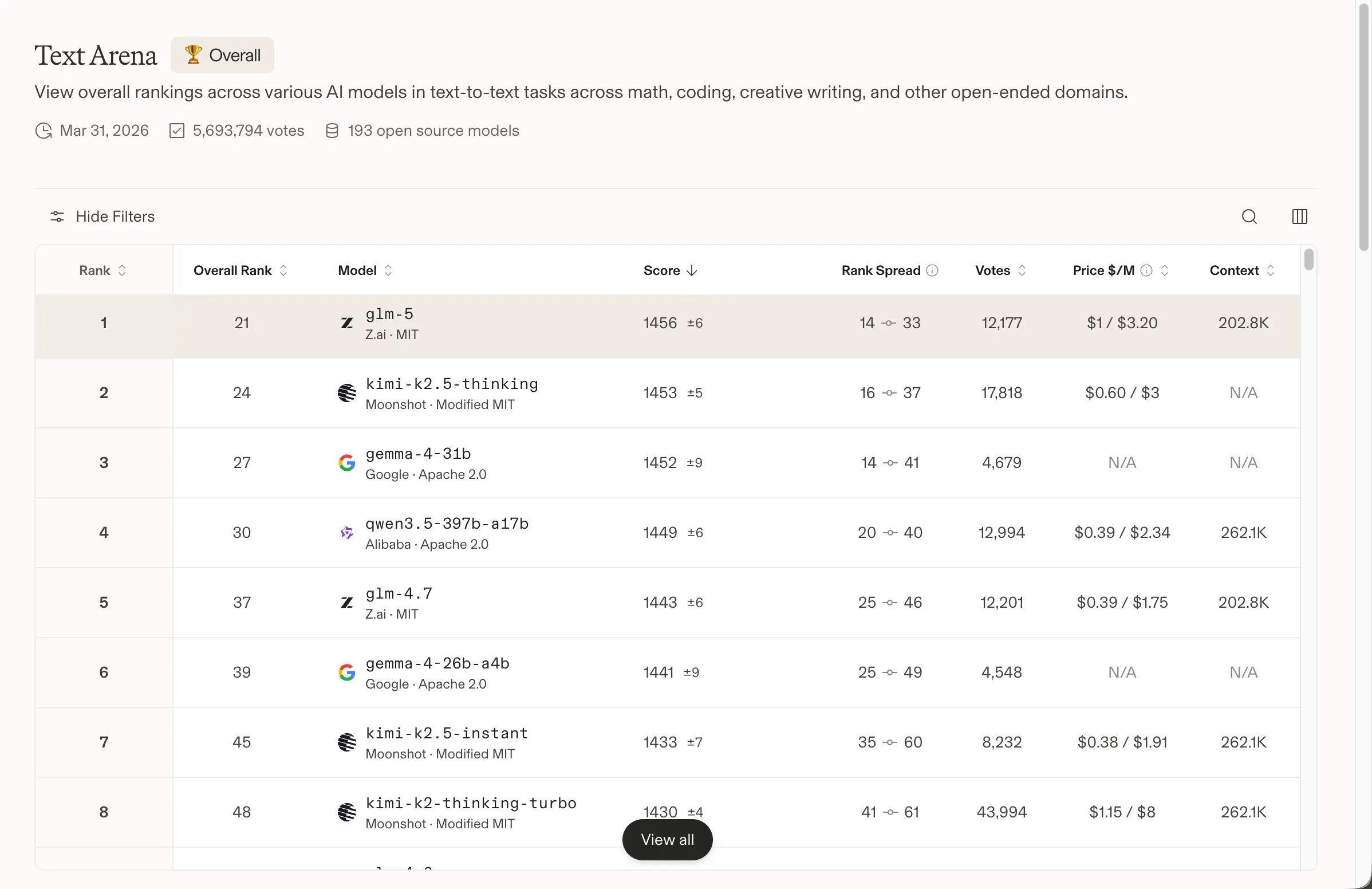 The 31B Dense currently ranks third among all open models on Arena AI's text leaderboard. The 26B MoE sits sixth. Google claims both outcompete models 20 times their size—a claim that holds up, at least against the Arena AI numbers, where Chinese models still hold the top two spots.
