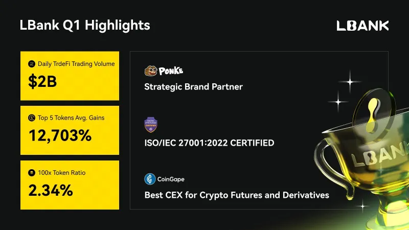 On the listings front, the top five newly listed tokens delivered an average return of 12,703%, and tokens that achieved 100x gains accounted for 2.34% of all new listings. LBank also secured ISO/IEC 27001:2022 certification for its information security management system and was awarded “Best CEX for Crypto Futures and Derivatives” by CoinGape.