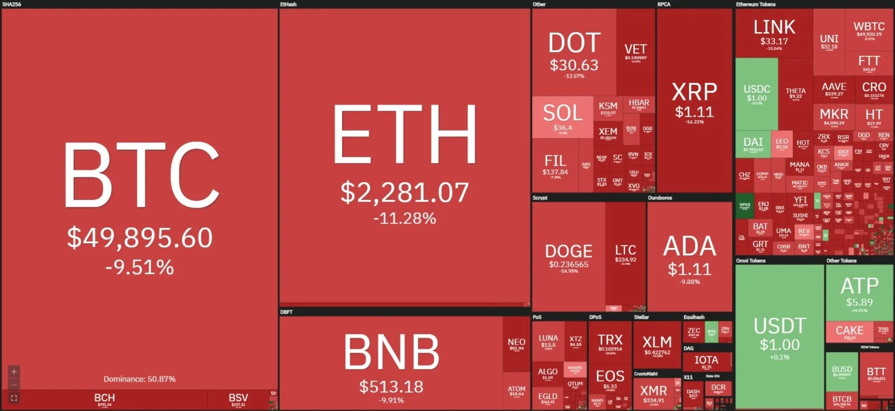 Bitcoin Cae por Debajo de $50.000 en la Corrección Más Acelerada del 2021