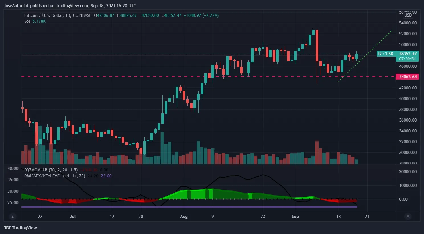 El 18 de septiembre ha sido clave para reforzar la tendencia alcista. Bitcoin comenzó el día a $47.300 y ha crecido hasta sus actuales $48.400, registrando un crecimiento de un 2.37% en la vela diaria que se está formando.