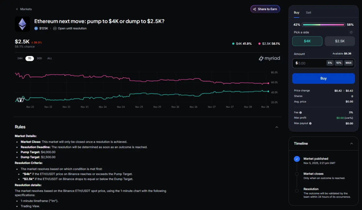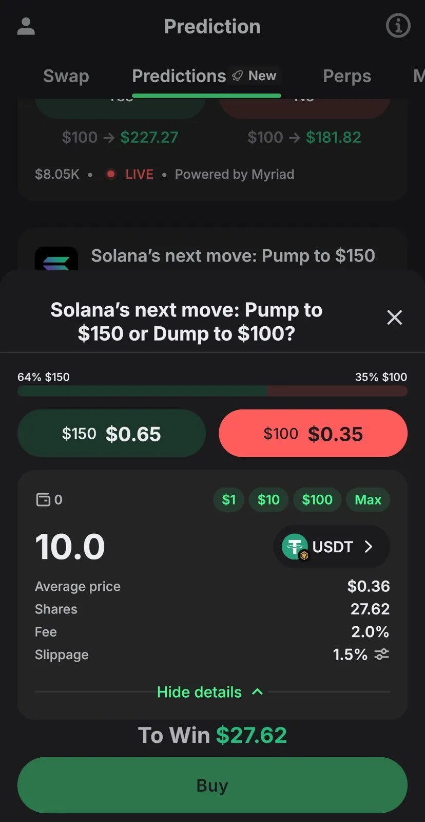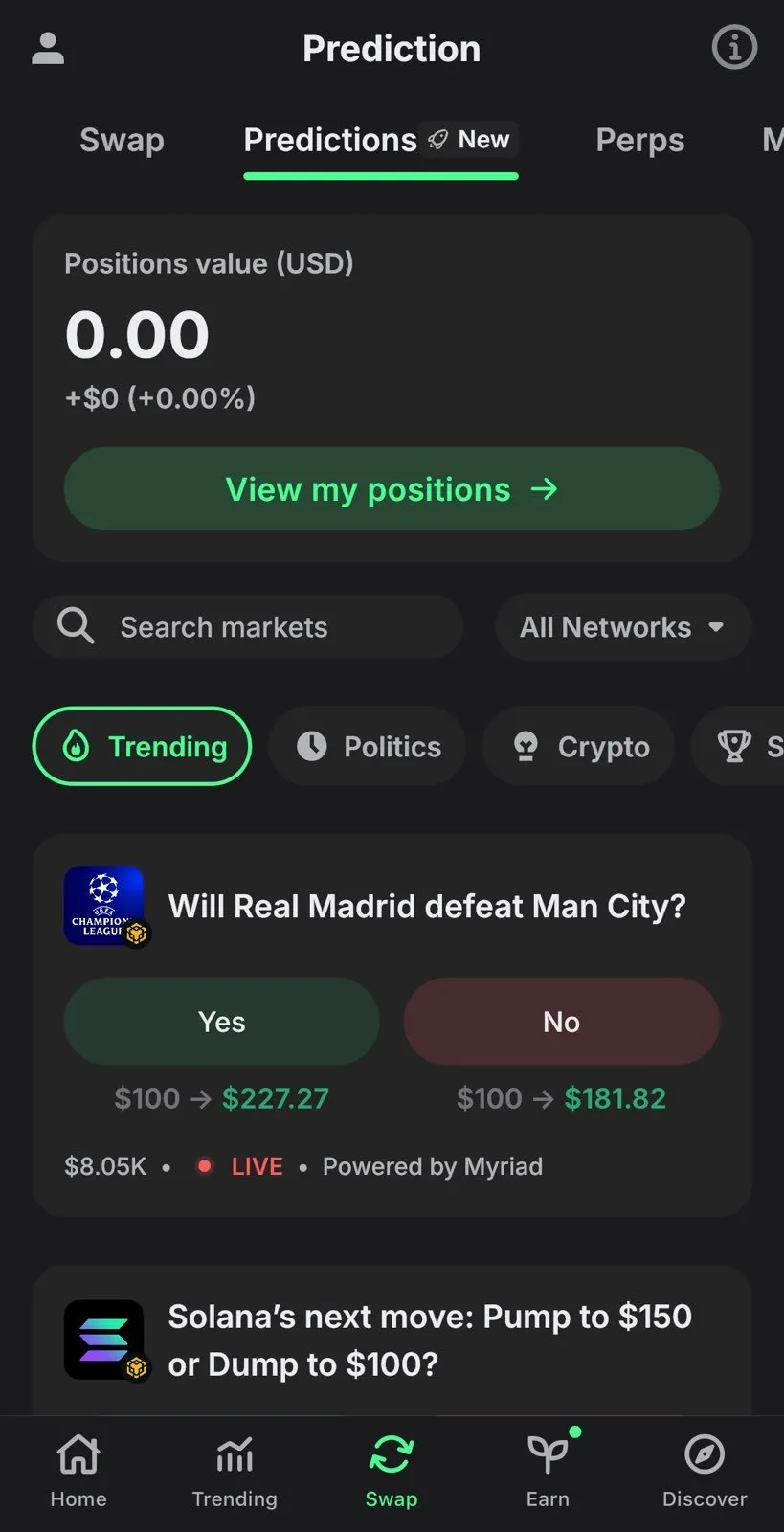 In December 2025, Myriad became the first prediction market to launch in-wallet predictions with Trust Wallet.